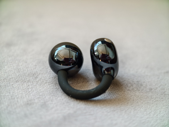 与传统入耳式耳机不同,FreeClip 2采用了独特的耳夹式结构,没有传统入耳式耳机的耳塞,取而代之的是精心设计的 “C 形桥”。这一结构由高弹性、亲肤材质打造,表面的纹理既保证了摩擦力,又增强了视觉上的科技感。耳机腔体部分采用镜面抛光工艺,宛如两颗锃亮的黑珍珠,在光线照射下反射出清晰的影像,质感拉满。